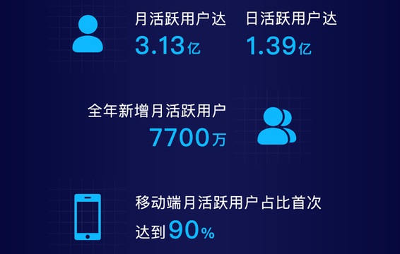 微博發(fā)布2016年第四季度及全年財報。截至2016年底,微博月活躍用戶全年凈增長7700萬,增至3.13億,移動端占比達到90%;日活躍用戶數(shù)也增長到了1.39億。2016年,微博全年總營收同比增長45%,達43.83億元人民幣,全年凈利潤大幅增長180%。(美通社,2017年2月23日北京)
