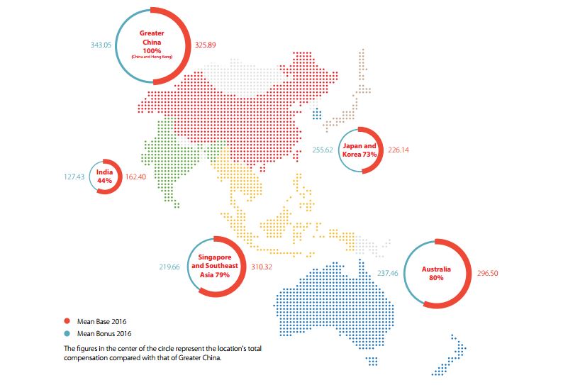 海德思哲的第四版年度《亞太地區(qū)私人資本薪酬調(diào)查》發(fā)現(xiàn),亞太地區(qū)私人資本專業(yè)人士的薪酬上漲趨勢(shì)在2016年有所放緩。近三分之二的受訪者表示,他們的基本薪酬在2016年沒有發(fā)生變化。與亞太地區(qū)其他地方相比,中國(guó)的薪酬水平最高。中國(guó)內(nèi)地和香港的私人資本專業(yè)人士在整個(gè)亞太地區(qū)中擁有最高的薪酬總額,他們的基本薪酬平均值為325,890美元,獎(jiǎng)金平均值為343,050美元,而印度專業(yè)人士的薪酬水平只能達(dá)到中國(guó)同行的44%。(美通社,2017年4月6日香港)