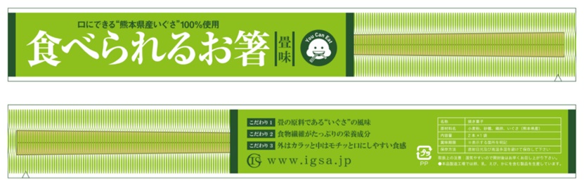 通過(guò)利用熊本縣的優(yōu)質(zhì)可食用IGSA蘭草,Kumamoto IGSA & Tatami Conference研制出了Tatami(榻榻米)味的可食用筷子。IGSA不僅可安全食用,也是含有大量膳食纖維的高營(yíng)養(yǎng)植物,其食物纖維相當(dāng)于60顆生菜里纖維的總和(每100克)。透過(guò)一雙筷子就可以攝入與一碗沙拉同樣多的膳食纖維。(美通社,2017年5月2日日本熊本)
