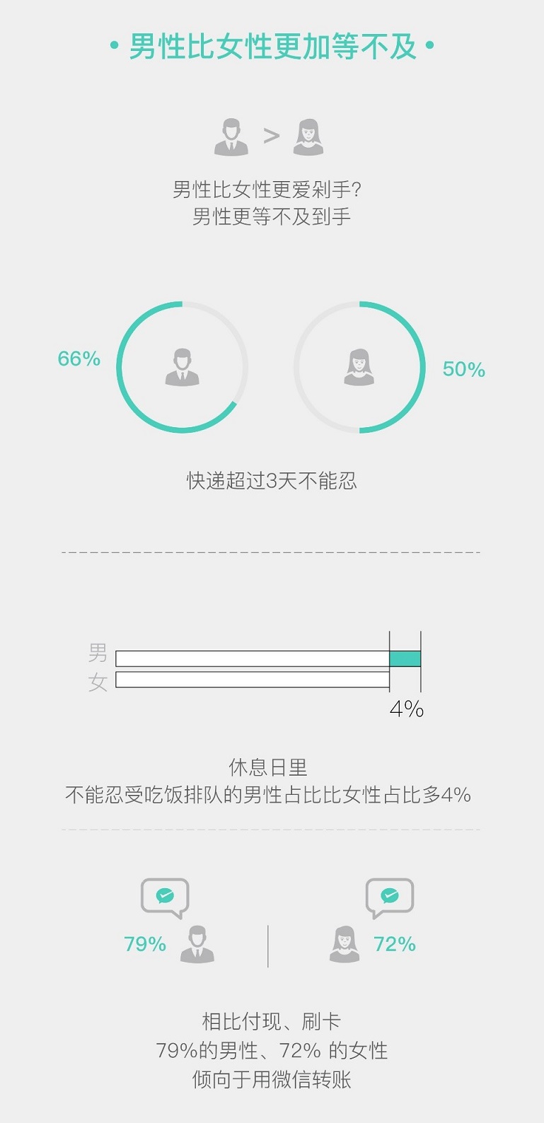 另外,綜合來看,相比于女性消費者,男性消費者更加不耐煩。
