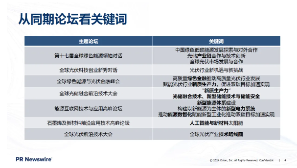 同時(shí),像SNEC這樣的展會(huì),作為行業(yè)風(fēng)向標(biāo),其設(shè)置的活動(dòng)主題和關(guān)鍵詞往往代表了最新的行業(yè)趨勢。今年的展會(huì)主題包括與產(chǎn)業(yè)鏈相關(guān)的內(nèi)容,如光儲(chǔ)產(chǎn)業(yè)鏈和新質(zhì)生產(chǎn)力,以及技術(shù)方向的趨勢,如光儲(chǔ)融合技術(shù)、新型能源體系、新型電力系統(tǒng)、人工智能和新材料等。