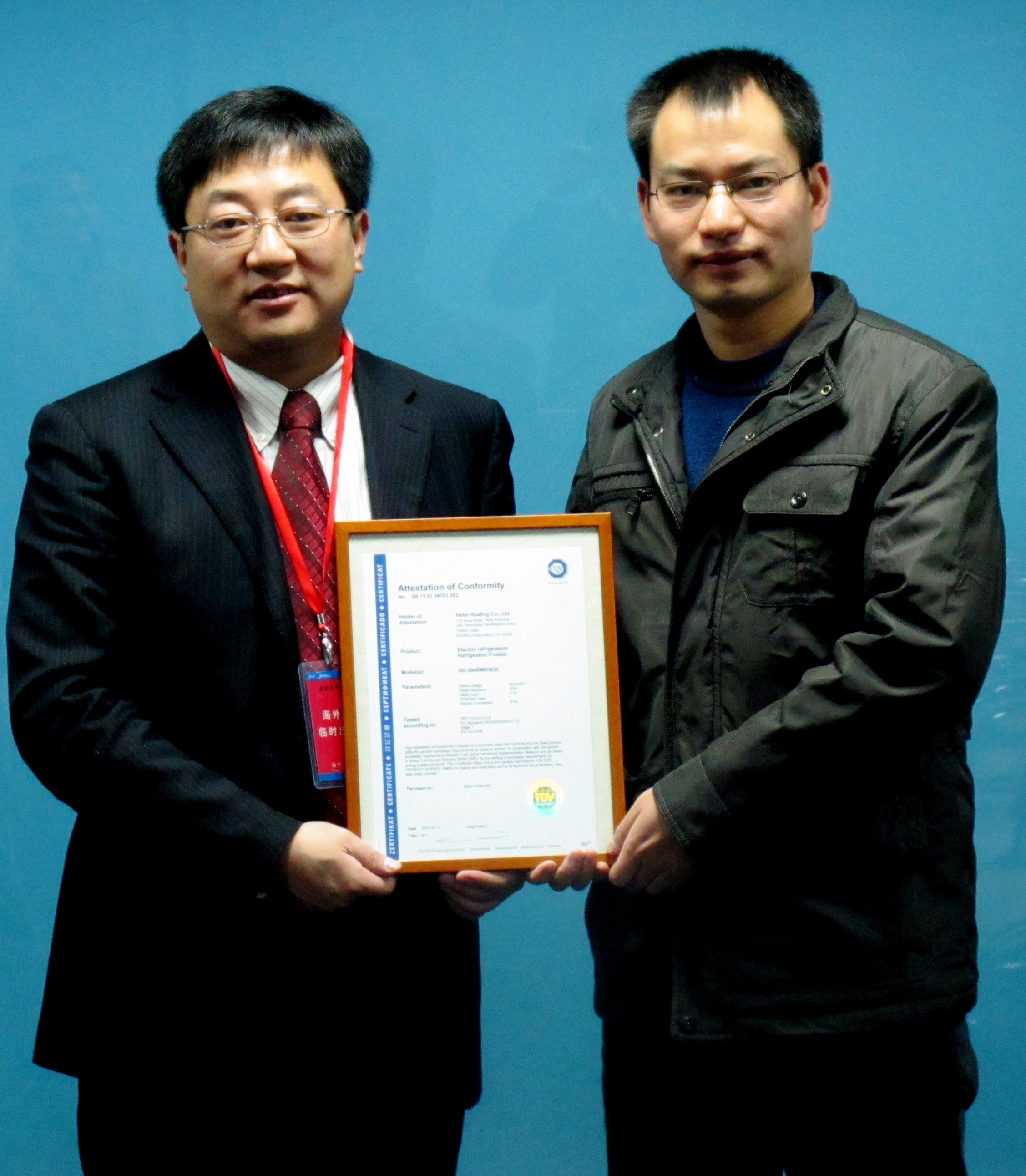 TUV 南德意志集團(tuán)(TUV SUD)為美的公司頒發(fā)冰箱能效證書(shū)