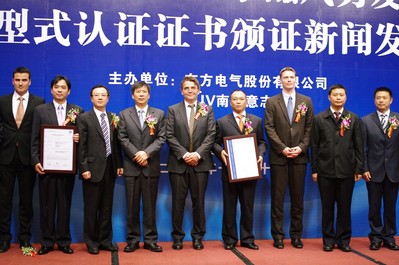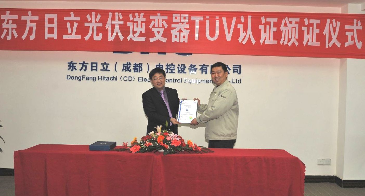 成都2011年1月28日電 /美通社亞洲/ --TUV南德意志集團(tuán)(TUV SUD)為東方日立光伏并網(wǎng)逆變器頒發(fā)TUV SUD認(rèn)證證書(shū)。當(dāng)日,TUV南德意志集團(tuán)、東方日立公司、東方電氣股份有限公司、東方國(guó)際合作公司的有關(guān)領(lǐng)導(dǎo)和職能部門(mén)負(fù)責(zé)人參加了頒證儀式。TUV南德意志集團(tuán)華中、華西總經(jīng)理蔣丹峰先生向東方日立頒發(fā)了TUV SUD證書(shū)。