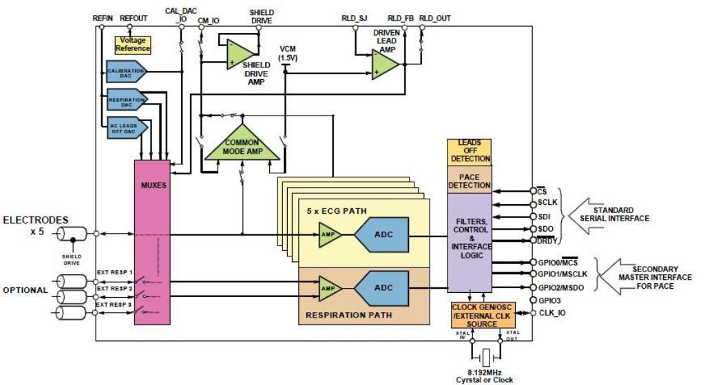 ADAS1000 還能支持 ECG 的無縫擴(kuò)展。ADAS1000 很好地解決了通道間的一致性問題,針對(duì)更多導(dǎo)聯(lián)的應(yīng)用需求,您可以靈活地利用多塊 ADAS1000 輕松實(shí)現(xiàn)系統(tǒng)的擴(kuò)展,高一致性讓信號(hào)看起來就像來自同一塊芯片,幾乎不增加系統(tǒng)的開發(fā)和調(diào)試難度。