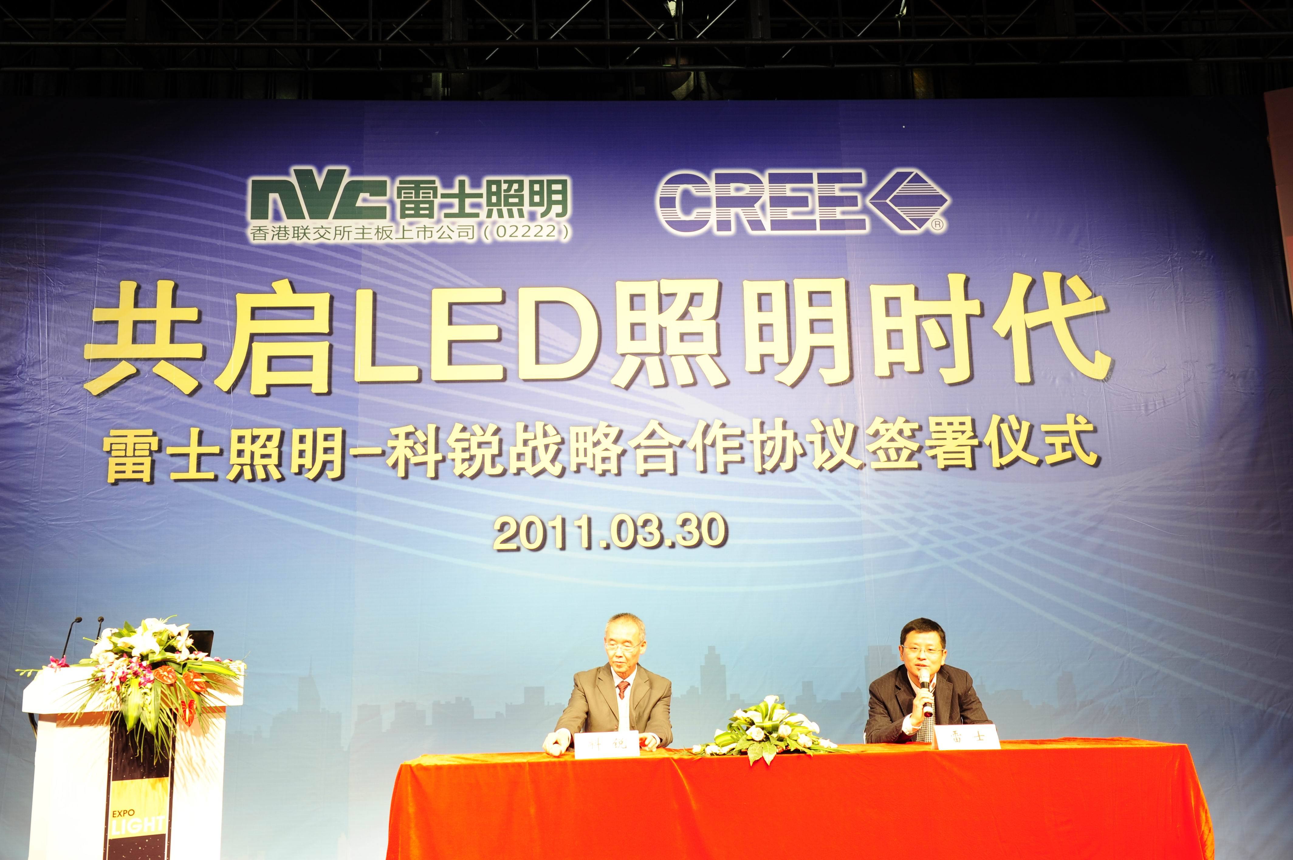 中國(guó)惠州2011年3月31電 /美通社亞洲/ -- 2011 年 3月 30日,在上海燈火璀璨的“東方之珠”電視塔和舉世矚目的上海世博園附近,兩個(gè)從事照明產(chǎn)業(yè)的“大腕”握手合作——國(guó)際知名專業(yè)照明企業(yè)雷士照明(香港主板上市代號(hào):2222)與全球LED 照明領(lǐng)域的行業(yè)領(lǐng)先者科銳公司(Nasdaq: CREE) 在此簽署戰(zhàn)略合作協(xié)議。“雷士照明是中國(guó)照明行業(yè)的領(lǐng)軍企業(yè),是LED照明應(yīng)用領(lǐng)域的領(lǐng)先者,在中國(guó)具有無法比擬的品牌和渠道優(yōu)勢(shì)。” 科銳中國(guó)市場(chǎng)總經(jīng)理唐國(guó)慶先生說。雷士照明董事長(zhǎng)吳長(zhǎng)江則表示,雷士將以低碳節(jié)能技術(shù)和產(chǎn)品優(yōu)勢(shì)繼續(xù)領(lǐng)跑LED節(jié)能照明市場(chǎng)。按照協(xié)議,雷士與科銳的合作將主要體現(xiàn)在照明應(yīng)用開發(fā)、技術(shù)交流合作、推動(dòng)市場(chǎng)發(fā)展等方面,雙方將進(jìn)行強(qiáng)強(qiáng)聯(lián)合,全面推動(dòng)半導(dǎo)體照明產(chǎn)業(yè)的發(fā)展與變革。