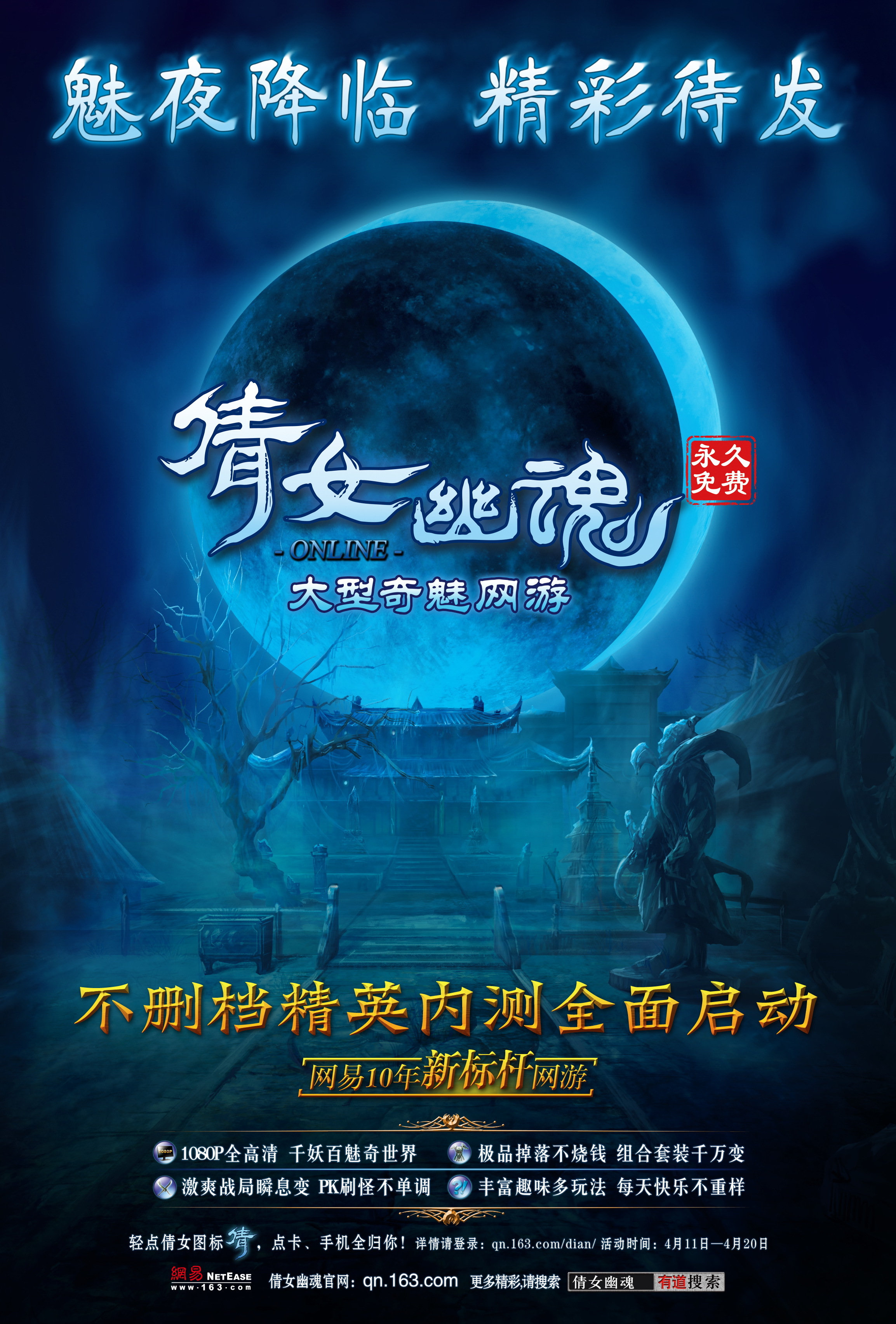 三方口碑,四大革新,六項大獎,作為網(wǎng)易十年新標(biāo)桿網(wǎng)游,《倩女幽魂》的推出標(biāo)志著網(wǎng)易全面進軍2.5D 即時制游戲細(xì)分市場,魅夜降至,是否早已迫不及待、躍躍欲試?共同期待4月22日不刪檔精英內(nèi)測的到來。