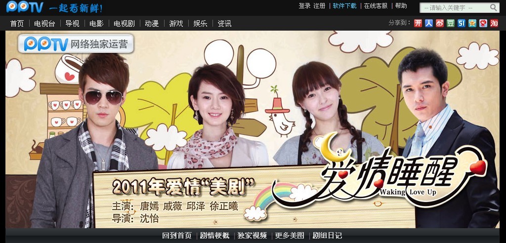 上海2011年4月26日電 /美通社亞洲/ -- 今日,PPTV 網(wǎng)絡(luò)電視(PPLive 旗下媒體,www.pptv.com)正式宣布網(wǎng)絡(luò)獨(dú)播由唐嫣、戚薇、邱澤、徐正曦主演的愛(ài)情大劇 --《愛(ài)情睡醒了》,而該片在 PPTV 網(wǎng)絡(luò)電視上的專區(qū)已于近日上線(http://zt.pptv.com/tv/aqsxl/ )。被公眾和粉絲們稱為“雙生雙旦”的四位主角集體盛裝亮相 PPTV 網(wǎng)絡(luò)電視,演繹一段危機(jī)四伏但又不乏浪漫輕松的“四角戀”劇情。