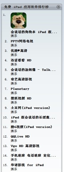 上海2011年5月17日電 /美通社亞洲/ -- 蘋果 iPhone4、iPad1、iPad2 的相繼推出,使眾多“果粉”趨之若鶩,市場異?;鸨?。隨著蘋果平板電腦進入高速增長階段,各類 APP 應(yīng)用也應(yīng)運而生。截止到目前,PPTV 網(wǎng)絡(luò)電視在 APP 應(yīng)用中免費 iPad 應(yīng)用軟件排行榜位列視頻軟件榜首。
