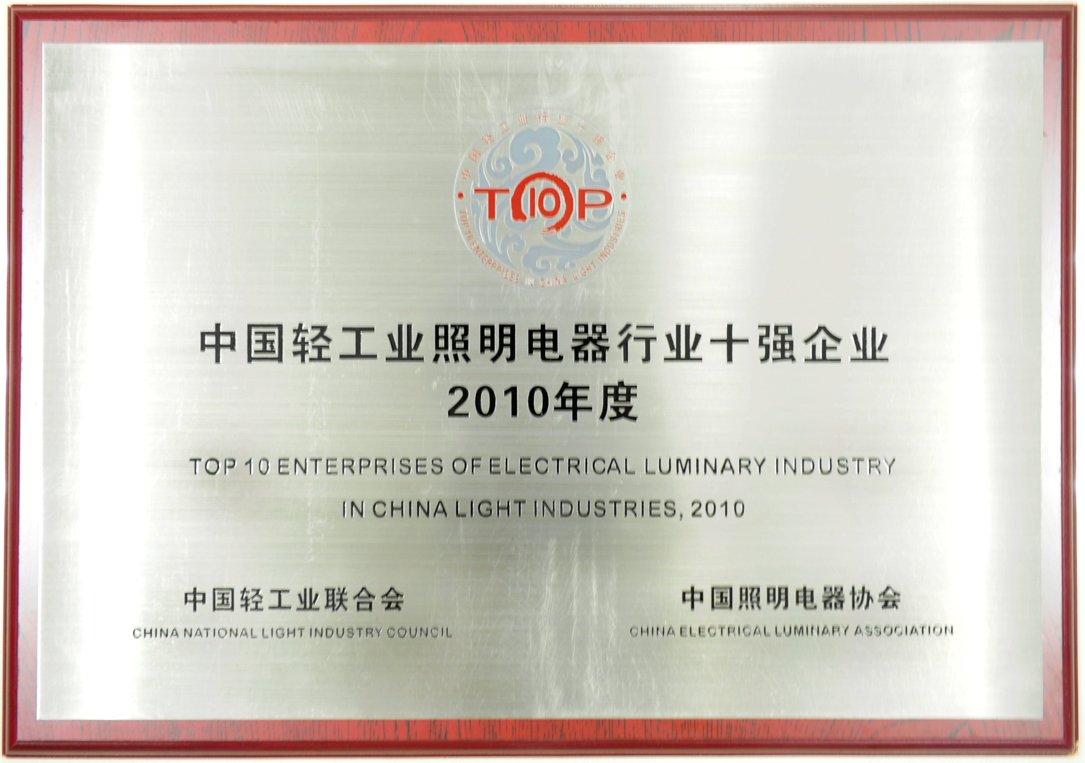 2010年,26家行業(yè)協(xié)會(huì)的29個(gè)行業(yè)參與此次評(píng)價(jià)工作,包括照明電器、自行車(chē)、五金、鐘表、玩具等行業(yè)。經(jīng)各行業(yè)協(xié)會(huì)確認(rèn),中國(guó)輕工業(yè)聯(lián)合會(huì)終審,共有雷士照明等企業(yè)榮登“2010年度中國(guó)輕工業(yè)十強(qiáng)企業(yè)”榜單。