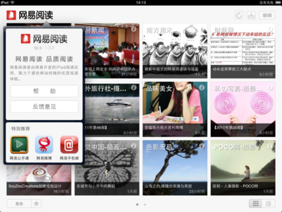 新版網(wǎng)易閱讀新增大圖預覽樣式設計和內(nèi)容滾動顯示效果,這使得用戶在使用網(wǎng)易閱讀在 iPad上閱讀時將獲得更為時尚、直觀的體驗。