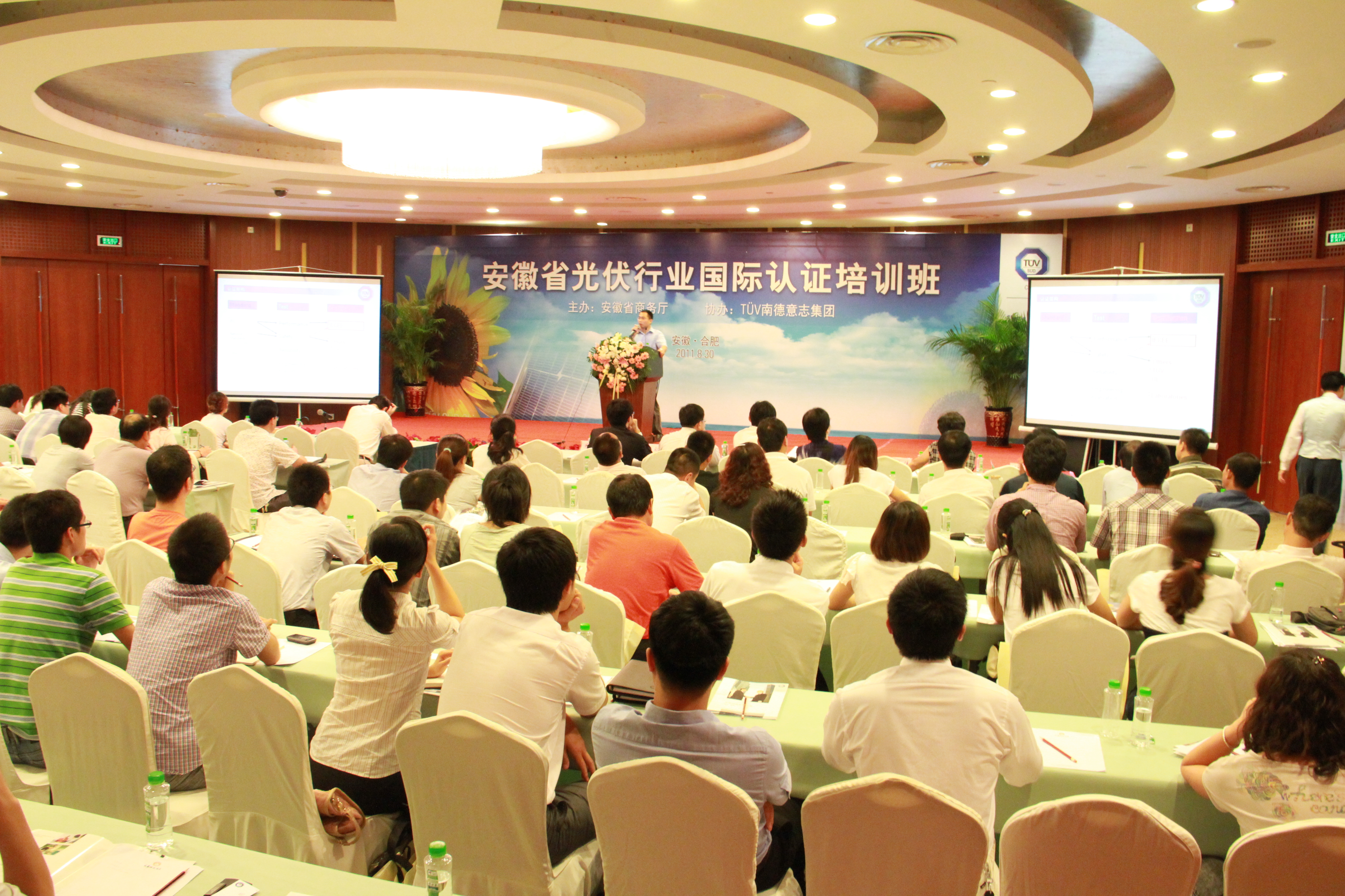在此背景下,安徽省商務(wù)廳大力邀請(qǐng) TUV 南德意志集團(tuán)共同舉辦了光伏行業(yè)國際認(rèn)證培訓(xùn)班。來自 TUV南德意志集團(tuán)從業(yè)多年、有豐富的標(biāo)準(zhǔn)執(zhí)行以及講課經(jīng)驗(yàn)的技術(shù)專家及資深審核員向與會(huì)者介紹了光伏行業(yè)各國準(zhǔn)入制度、解讀歐盟測試標(biāo)準(zhǔn)及案例分析;還針對(duì)體系認(rèn)證給光伏企業(yè)帶來的益處等問題進(jìn)行了詳細(xì)的介紹。TUV 南德意志集團(tuán)光伏事業(yè)部許海亮先生提到“要實(shí)現(xiàn)中國光伏產(chǎn)業(yè)的持續(xù)增長,推廣和使用國際管理體系標(biāo)準(zhǔn)是企業(yè)增強(qiáng)自身競爭力、突破技術(shù)貿(mào)易壁壘、擴(kuò)大光伏產(chǎn)品出口必不可少的助推劑。而幫助企業(yè)讀懂各國準(zhǔn)入制度,將產(chǎn)品順利打入國際市場是 TUV 南德意志集團(tuán)這樣的第三方機(jī)構(gòu)的職責(zé)所在。”