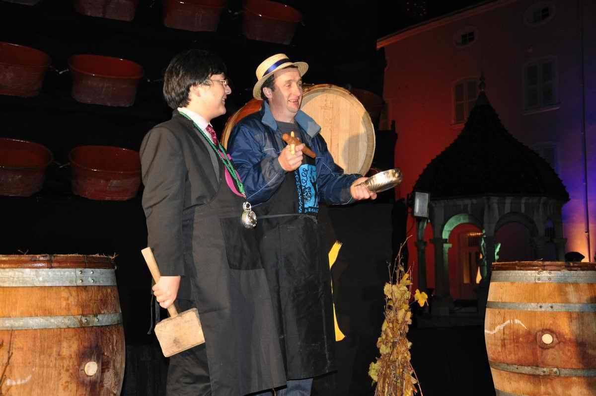 而當(dāng)零點(diǎn)鐘聲敲響的時(shí)刻,法國薄若萊2011的新酒的第一個(gè)酒桶亦是由劉君以傳統(tǒng)的儀式鑿開,成為了全法國第一位喝到薄若萊新酒的人,更是第一位在薄若萊市政廳門口敲開薄若萊新酒酒桶的中國人。顯示了法國官方對(duì)也買酒在推廣薄若萊新酒文化方面的認(rèn)可,以表彰也買酒幫助薄若萊新酒拓展中國市場(chǎng)的卓越貢獻(xiàn)。