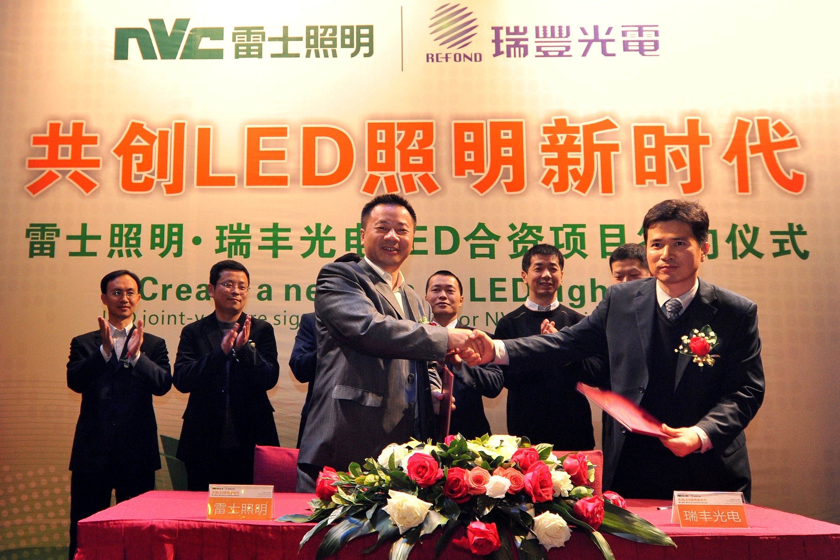惠州2012年1月16日電 /美通社亞洲/ -- 2012年1月13日,中國(guó)照明行業(yè)龍頭企業(yè) -- 雷士照明(香港主板上市代號(hào):2222.HK)與中國(guó)領(lǐng)先的LED封裝企業(yè) -- 瑞豐光電(全稱“深圳市瑞豐光電子股份有限公司”,股票代碼:300241.SZ)在廣東惠州舉行“共創(chuàng)LED照明新時(shí)代 -- 雷士照明·瑞豐光電LED合資項(xiàng)目簽約啟動(dòng)儀式暨新聞發(fā)布會(huì)”活動(dòng),雙方強(qiáng)強(qiáng)聯(lián)合,優(yōu)勢(shì)互補(bǔ),資源共享,開(kāi)啟一個(gè)共贏 LED 照明新局面,全面推動(dòng)行業(yè) LED 產(chǎn)業(yè)鏈升級(jí)與發(fā)展變革。
