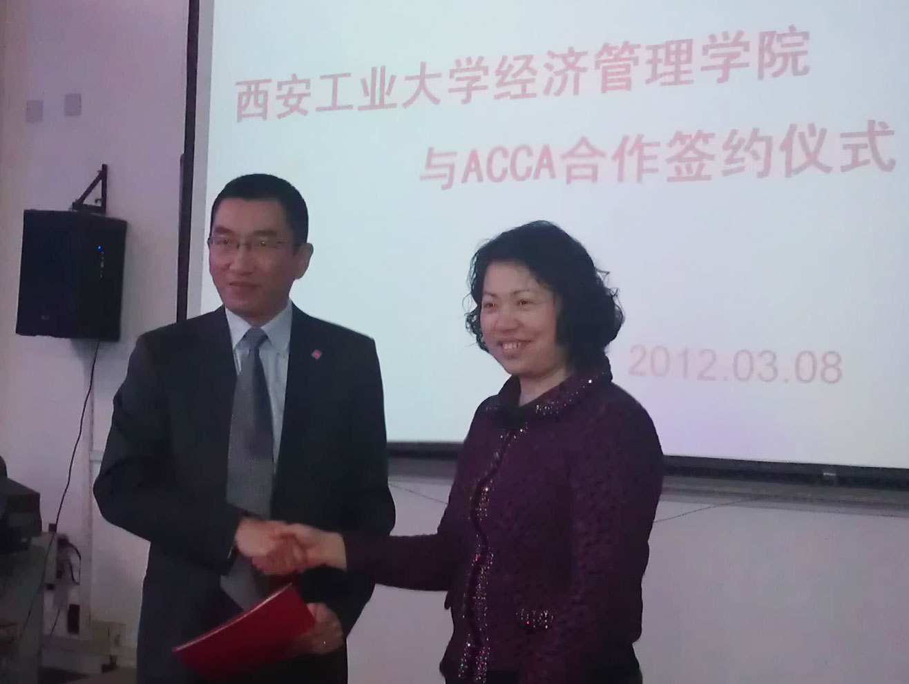 北京2012年3月13日電 /美通社亞洲/ -- 3月8日下午,“西安工業(yè)大學(xué)經(jīng)濟(jì)管理學(xué)院與ACCA合作簽約儀式”在西安工業(yè)大學(xué)經(jīng)濟(jì)管理學(xué)院舉行。ACCA北京代表處首席代表于翔天先生與經(jīng)濟(jì)管理學(xué)院院長李純青教授、會計學(xué)系主任史璇副教授等進(jìn)行了親切的會談并簽署了正式合作協(xié)議。根據(jù)協(xié)議,經(jīng)濟(jì)管理學(xué)院將ACCA國際財會資格課程嵌入到會計學(xué)專業(yè)本科教學(xué)中,計劃于2012年開始招收第一期ACCA方向班學(xué)員,培養(yǎng)緊缺的國際化高級財會人才。