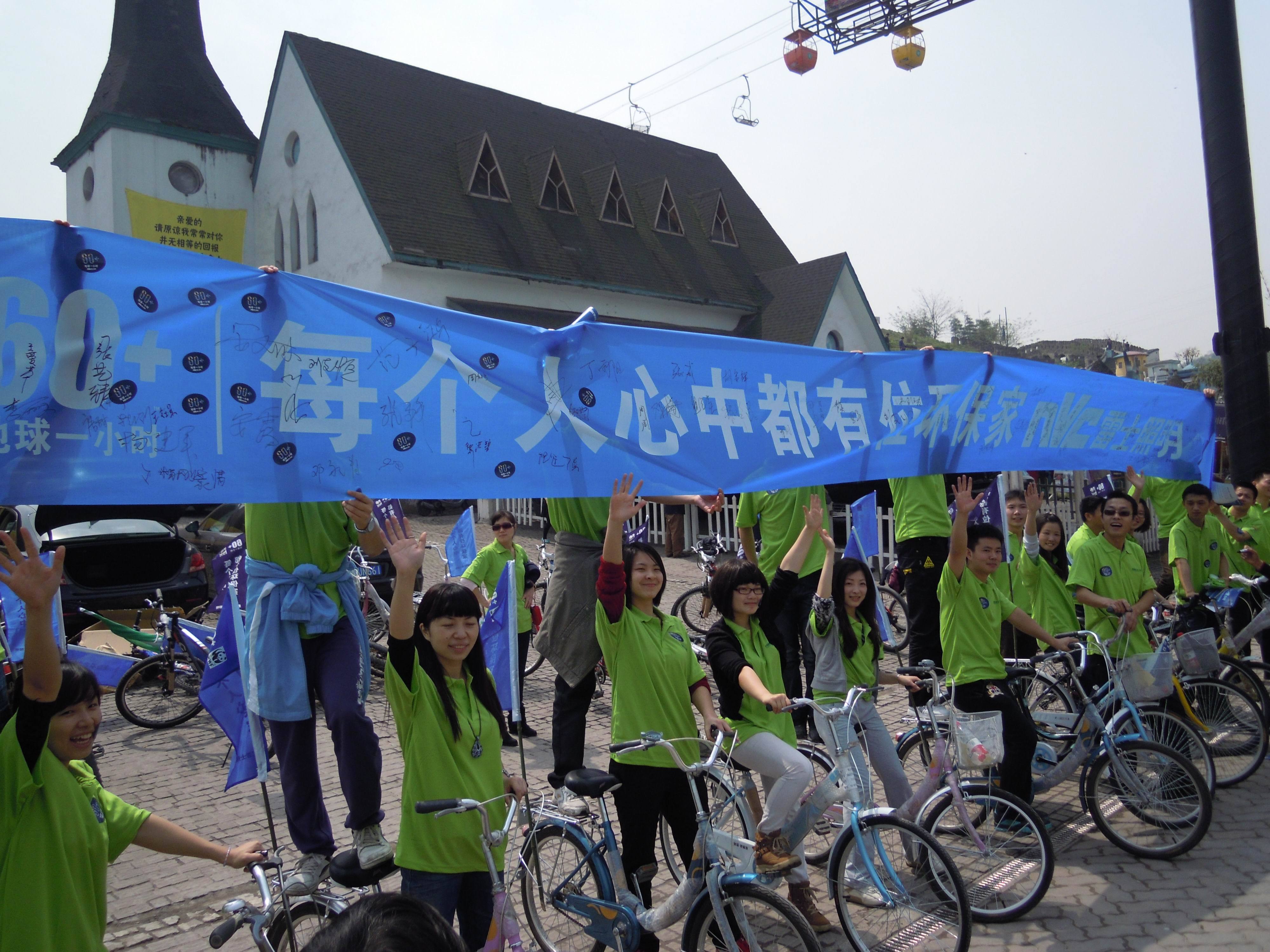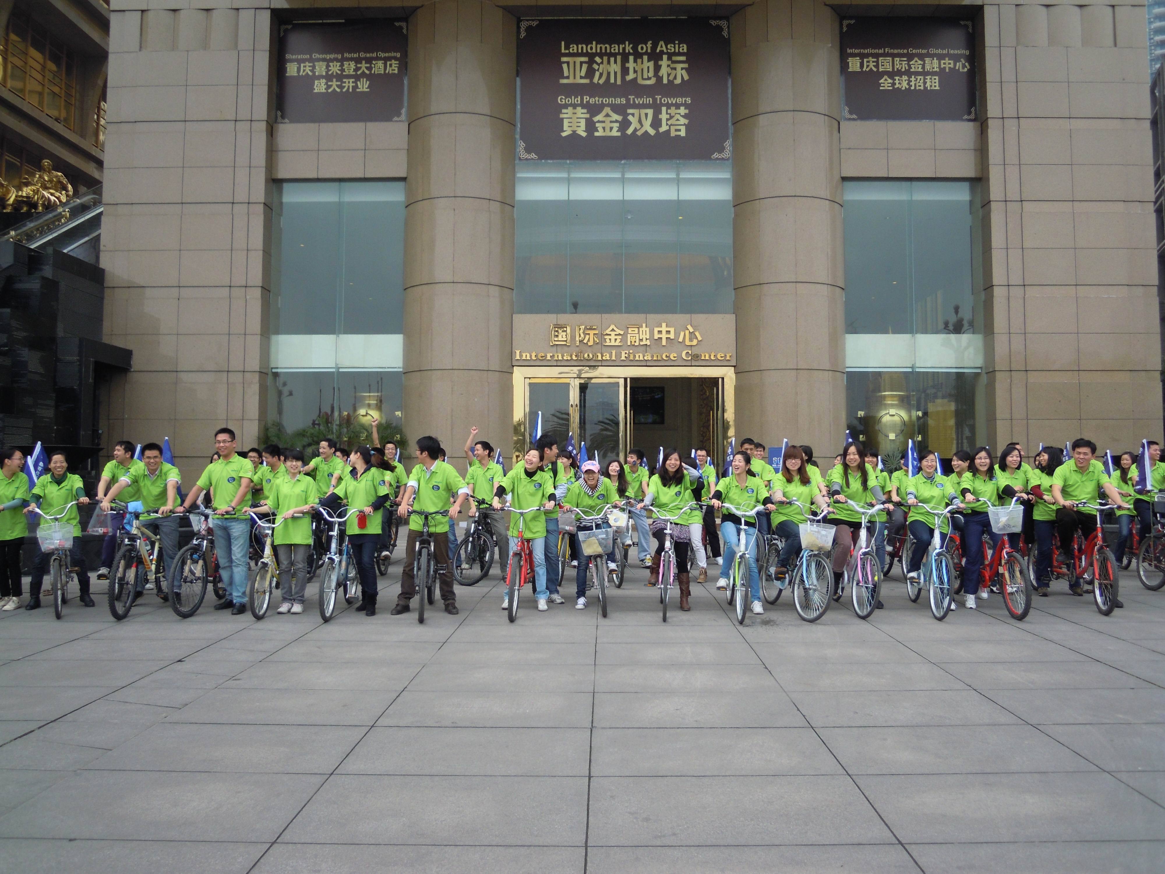 上午11點整,志愿者騎行隊伍從國際金融中心出發(fā),騎行至洋人街景區(qū),醒目的雷士照明綠色T恤、隨風(fēng)飄揚的“地球一小時”活動大旗,雷士照明以低碳出行新方式宣傳其環(huán)保行動。
