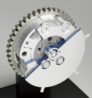 為持續(xù)提升動(dòng)力性、燃油經(jīng)濟(jì)性且降低排放。博格華納在本屆車展首次亮相了可變氣門正時(shí)技術(shù),通過調(diào)整進(jìn)氣、排氣的量,和進(jìn)排氣閥開合時(shí)間,角度使進(jìn)入的空氣量達(dá)到較佳,提高燃燒效率。但傳統(tǒng)的該技術(shù)損耗了發(fā)動(dòng)機(jī)的大量能量,使得發(fā)動(dòng)機(jī)轉(zhuǎn)速扭矩不足。博格華納開發(fā)出了一種創(chuàng)新的調(diào)整凸輪軸相位方法:利用凸輪軸扭矩交替變化的能量不停開、關(guān)液壓閥門來調(diào)整凸輪軸相位。通過減少動(dòng)力損耗,提升功率及幫助實(shí)現(xiàn)發(fā)動(dòng)機(jī)清潔燃燒來提升燃油經(jīng)濟(jì)性。