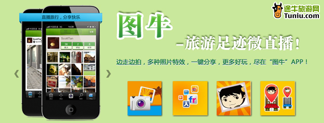 “圖?!笔謾C客戶端的誕生,將途牛旅游網(wǎng)“途牛社區(qū)”分享功能拓展到了移動互聯(lián)網(wǎng)。截至2012年3月中旬,途牛社區(qū)總計整合了近10萬篇旅游攻略,通過途牛出游的旅游達人在途牛社區(qū)總計發(fā)表游記超過4000篇。旅游攻略和游記的足跡,踏遍了全球的每一個引人入勝的角落。新近誕生的“圖?!盇PP,除可即時拍照圖片上傳和分享游記,更自帶了LOMO、X-Pro、炫彩、老照片等十余種濾鏡,輕松玩轉(zhuǎn)圖片美化效果。一鍵分享功能,讓你的微博、flickr、人人網(wǎng)等好友能實時分享美景;“圖牛”更能設(shè)置拍照地點坐標信息,并可查看周圍的用戶和景點圖片,讓旅游分享隨心所欲。