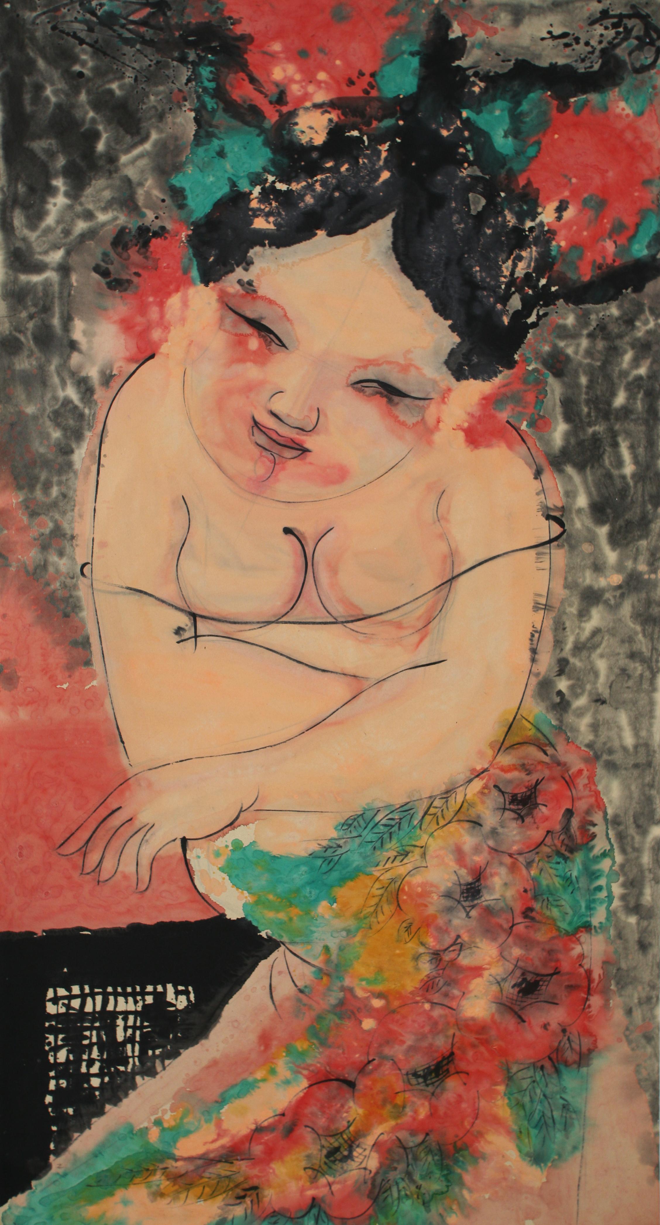 童振剛中國(guó)畫(huà)筆墨功夫深厚。他的創(chuàng)作,強(qiáng)調(diào)以線造型,水墨暈染層次清晰。用色或大紅大綠,或黑白分明。雖然用的是傳統(tǒng)的中國(guó)畫(huà)工具,但童振剛的藝術(shù)態(tài)度強(qiáng)調(diào)創(chuàng)作的當(dāng)代性。這就是童振剛的自在。他以他神定氣閑的精神狀態(tài),以及彈性十足的表現(xiàn)手段,深情地演繹出了一種當(dāng)代“游世”的藝術(shù)風(fēng)格。這就像他表現(xiàn)那些藏匿于深閨中的美女形象,筆端上的流露從來(lái)都不見(jiàn)肉欲橫流,而只見(jiàn)情深意切的愛(ài)心一樣。人物輪廓大處以線勾勒,婉轉(zhuǎn)流暢;細(xì)微之處,如頭飾、面頰等則專事暈染,以色墨填充,界域自然渾成,毫無(wú)雕琢之匠氣。人物神態(tài)悠然,眼神或欣悅、或淡然、或迷離,甚至隱有一絲鄙夷和傲然。他的藝術(shù)不是空中樓閣、飄渺煙云,雖然也并非現(xiàn)實(shí)記錄、具象寫(xiě)實(shí),但總有某些撩人神經(jīng)末稍的情趣,滲透著他對(duì)人世間諸多細(xì)膩的生命體驗(yàn)……水墨不是原來(lái)的水墨,女人也不是原來(lái)的女人,世界也不是原來(lái)的世界,童振剛的藝術(shù)也更不是原來(lái)的那種藝術(shù)。他的藝術(shù)在不斷的衍生之中展開(kāi)自己的意義。