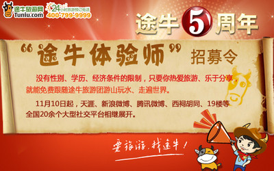 即日起至5月25日,無論是途牛旅游網(wǎng)的老會(huì)員,還是初次到途牛旅游網(wǎng)分享旅游心得的新伙伴,均可點(diǎn)擊如下鏈接報(bào)名參與:http://bbs.tuniu.com/thread-181521-0.html