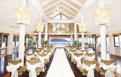 情人崖吹來(lái)的輕柔海風(fēng),湛藍(lán)的海水。艷麗繽紛的花卉,新人、家人、賓客都陶醉在大自然的和諧氣氛中,一起見(jiàn)證愛(ài)情的綻放。圣壇盡頭是一望無(wú)際、令人目眩的碧藍(lán)大海和天空。新人穿著潔白的禮服,在碧水環(huán)繞的圣壇前,許下永恒的愛(ài)情誓言!