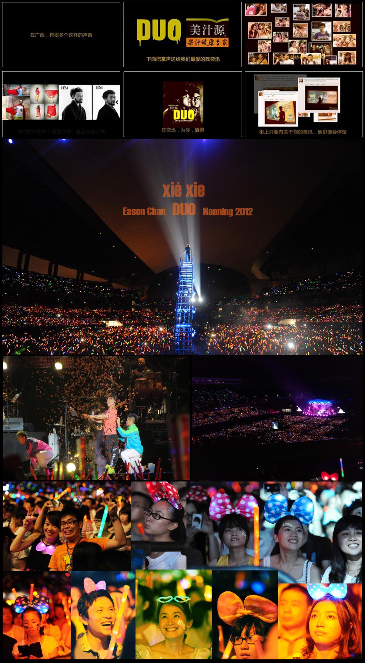 美汁源DUO陳奕迅2012南寧演唱會(huì)在6月30日晚8點(diǎn)正式開場(chǎng)。開場(chǎng)前,熒幕上播放了長(zhǎng)達(dá)2分鐘的美汁源 DUO 面玩轉(zhuǎn) Show 集成視頻。視頻由不同歌迷對(duì)著鏡頭喊“Eason”,并集體用粵語大喊“Eason 南寧歡迎你”拉開了視頻的序幕。感人的背景音樂與旁白,伴隨著歌迷參與美汁源 DUO 面玩轉(zhuǎn) Show 的照片緩緩拉開。