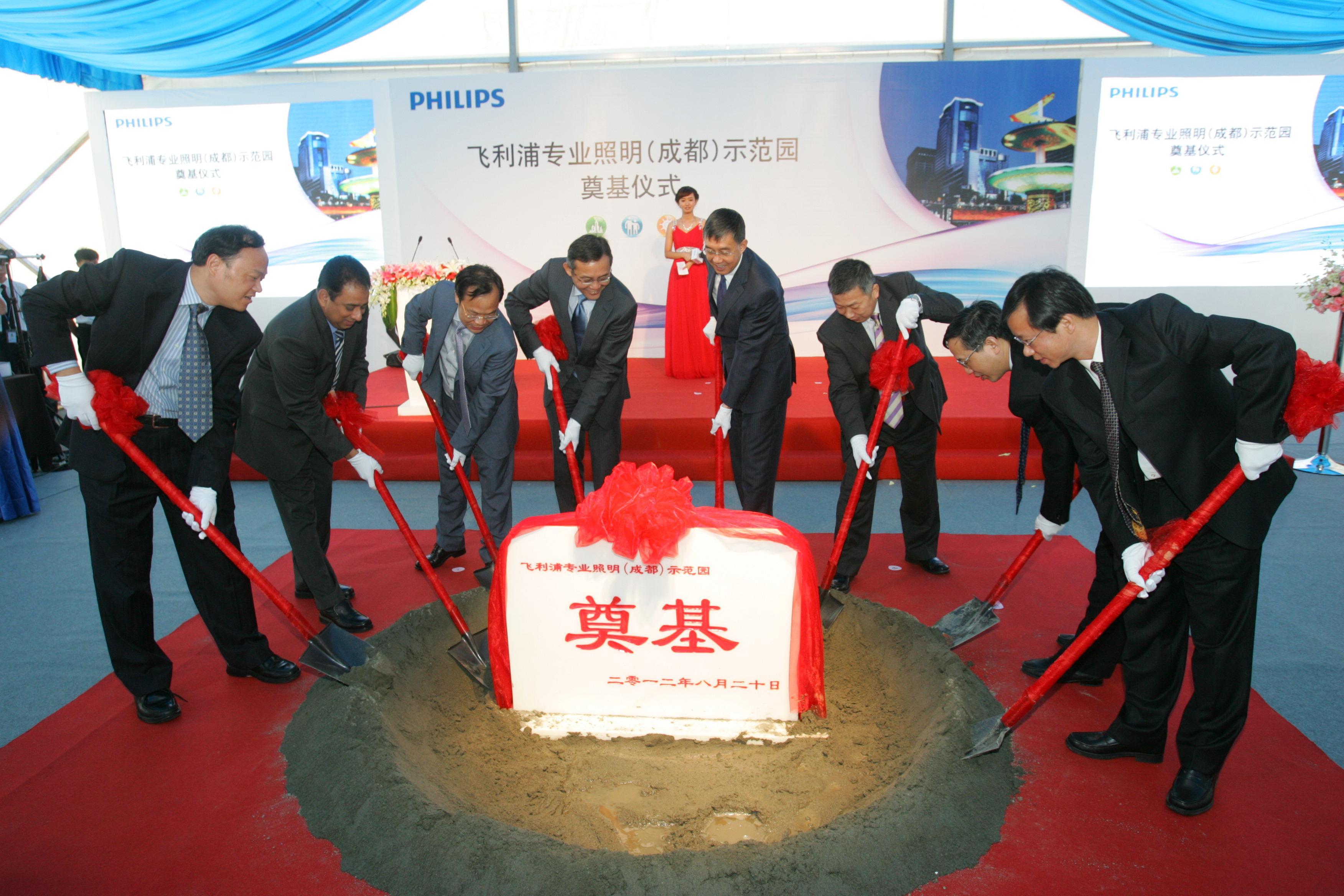 中國成都2012年8月22日電 /美通社亞洲/ -- 近日,飛利浦(中國)投資有限公司在成都高新技術(shù)開發(fā)區(qū)西部園區(qū)舉行了飛利浦專業(yè)照明(成都)示范園奠基儀式,標(biāo)志著繼2011年6月飛利浦將成都設(shè)立為其在中國的第二個(gè)地區(qū)總部,并于2011年底與成都市政府簽訂 LED 戰(zhàn)略合作備忘錄以來,雙方的合作進(jìn)入了下一個(gè)重要階段。成都市委常委、高新區(qū)黨工委書記敬剛,荷蘭駐華大使館經(jīng)濟(jì)和商務(wù)參贊蘭杰人(Jeroen Lamers)博士和飛利浦照明事業(yè)部大中華區(qū)總裁梁漢峰,飛利浦集團(tuán)公共事務(wù)部大中華區(qū)主管佘端志等嘉賓出席了此次活動(dòng)。