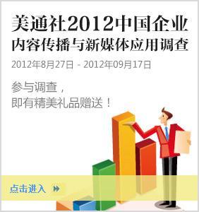 北京2012年8月27日電 /美通社亞洲/ -- 美通社正式啟動(dòng)2012中國企業(yè)內(nèi)容傳播與新媒體應(yīng)用調(diào)查。本次調(diào)查旨在了解中國企業(yè)內(nèi)容傳播的現(xiàn)狀,包括使用渠道、預(yù)算投入、未來趨勢,以及中國企業(yè)在各種新媒體應(yīng)用工具、社交媒體平臺(tái)的使用情況。此次調(diào)查為期三周,將通過電郵、微博、社交網(wǎng)站等多種渠道向企業(yè)中從事公關(guān)傳播、品牌推廣和市場營銷的人士進(jìn)行推廣。參加者只要提交有效問卷,就會(huì)獲得美通社定制的精美萬用毯。點(diǎn)擊參與http://www.pcdaier.cn/marketing/survey-2012。