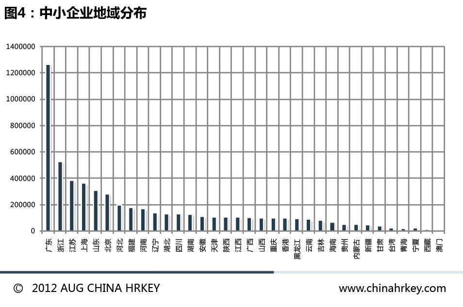 珠三角、長(zhǎng)三角占到中小企業(yè)的數(shù)量的30%,其他地區(qū)約占40%,體現(xiàn)出經(jīng)濟(jì)發(fā)達(dá)地區(qū)也是中小企業(yè)最活躍的區(qū)域。