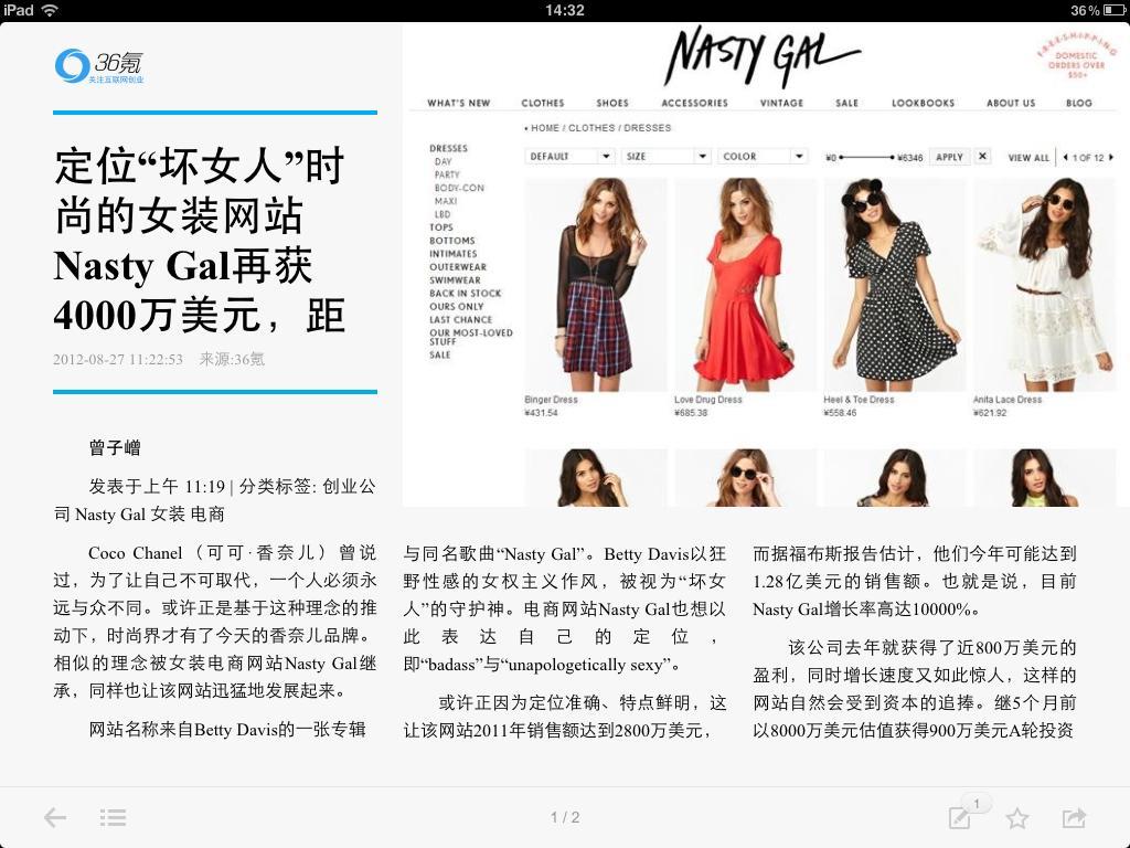 全新改版后的網(wǎng)易云閱讀,在閱讀體驗(yàn)上給用戶帶來了全新的視覺感受。與之前版本不同的是,改版后的云閱讀內(nèi)容呈現(xiàn)模塊,更貼近雜志式排版設(shè)計(jì)。打開iPad上訂閱的內(nèi)容源,進(jìn)入文章正文部分,分頁(yè)顯示的排版設(shè)計(jì)使得文章的正文內(nèi)容可以在當(dāng)前屏幕中清晰地完整呈現(xiàn),免去了以往用戶閱讀文章時(shí)候,還需上下拖動(dòng)正文內(nèi)容的煩惱。而對(duì)于一些本身帶有導(dǎo)語(yǔ)的正文內(nèi)容,在新版的網(wǎng)易云閱讀中也在版式構(gòu)成中對(duì)其進(jìn)行了保留,并進(jìn)行重新排版。