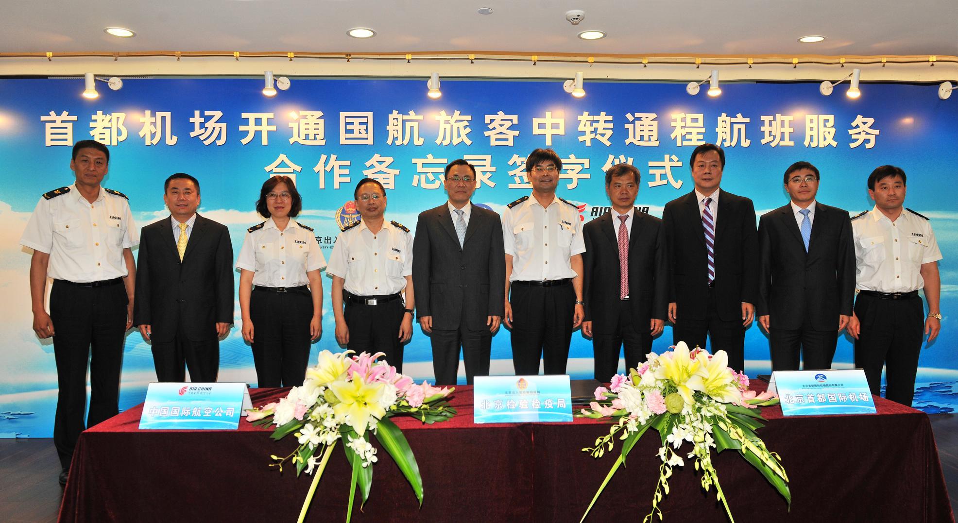 北京2012年9月14日電 /美通社/ -- 9月15日,中國國際航空股份有限公司(以下簡稱“國航”)從德國法蘭克福、意大利米蘭、瑞典斯德哥爾摩三個(gè)城市經(jīng)北京首都國際機(jī)場(chǎng)中轉(zhuǎn)行李直掛服務(wù)開始試運(yùn)行,將大大方便中外旅客。9月14日,北京出入境檢驗(yàn)檢疫局、北京首都國際機(jī)場(chǎng)股份有限公司、中國國航就開通這項(xiàng)服務(wù)共同簽署了合作協(xié)議,這也是檢驗(yàn)檢疫等監(jiān)管部門為方便旅客積極探索、創(chuàng)新合作模式取得的重大突破。北京首都國際機(jī)場(chǎng)股份有限公司總經(jīng)理張光輝、北京出入境檢驗(yàn)檢疫局副局長楊杰、中國國際航空股份有限公司總裁蔡劍江出席了此次簽約儀式。