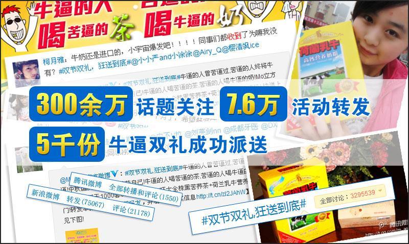 短短5天時間,#雙節(jié)雙禮 狂送到底#火爆程度超乎想象。據(jù)Mo立方官方微博統(tǒng)計(jì),本次微博活動直接覆蓋成都本地活躍微博用戶超30萬,話題熱點(diǎn)關(guān)注度突破300萬,活動參與用戶數(shù)突破7萬,送出雙節(jié)大禮超5000份,上千中獎用戶微博曬單(曬禮品圖)互動。與此同時,Mo立方網(wǎng)站用戶訪問量及注冊用戶增長迅猛,Mo立方、環(huán)太及圣元的品牌美譽(yù)度更是通過廣大用戶的口碑相傳,得到了很大提升。