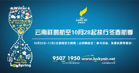除此之外,云南祥鵬航空還為旅客們準(zhǔn)備了超值免票大禮。10月22日-11月2日,云南祥鵬航空的新浪官方微博(@祥鵬航空 http://e.weibo.com/luckyairline )特別舉辦了關(guān)于2012/13冬春航班換季的有獎(jiǎng)問(wèn)答活動(dòng),廣大微博用戶們可于該時(shí)間段內(nèi)按照要求參與活動(dòng)并正確回答微博問(wèn)題,就有機(jī)會(huì)帶走4張免費(fèi)機(jī)票大獎(jiǎng),更有眾多精美小禮品贈(zèng)送。