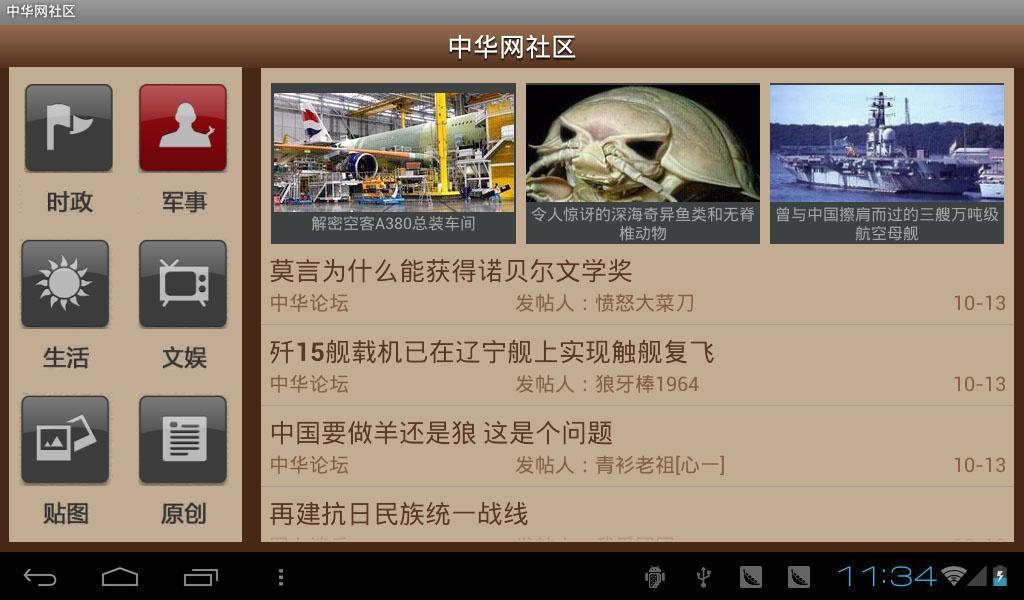 中華網(wǎng)社區(qū)電視客戶端(android 版)產(chǎn)品 http://u.china.com/android/club_tv/ 匯聚中華網(wǎng)精華版社區(qū)欄目的豐富資源,交互簡潔明了,內(nèi)容圖文并茂,欄目分為:軍事、時政、生活、文娛、貼圖、原創(chuàng),6大版塊,覆蓋了中華網(wǎng)社區(qū) WEB 的精品資源,數(shù)據(jù)與官網(wǎng)時時同步,使電視用戶能夠同步參與到 WEB 社區(qū)的討論中來。