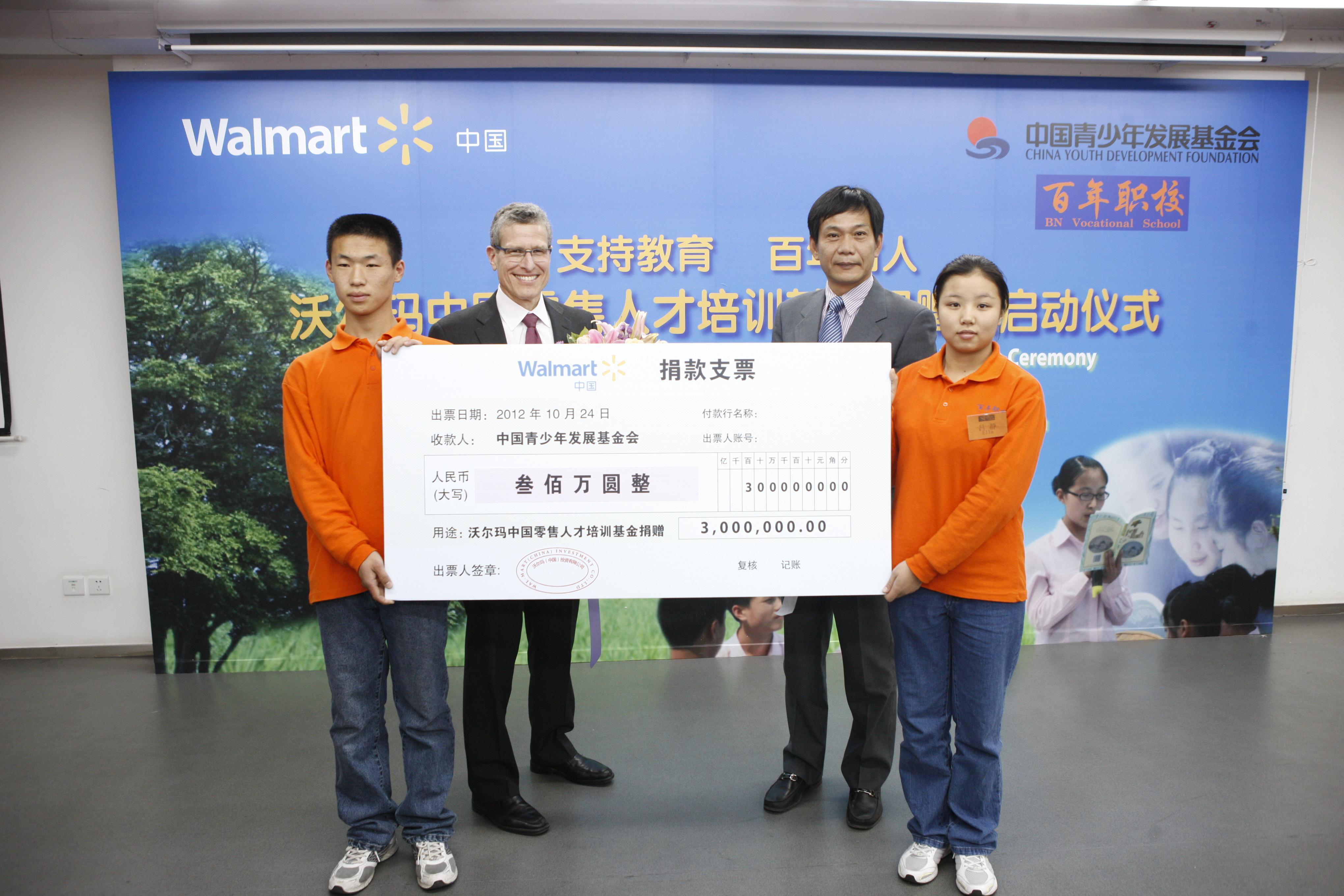 北京2012年10月24日電 /美通社/ -- 今天,沃爾瑪中國與中國青少年發(fā)展基金會(huì)在北京百年職校舉行“沃爾瑪零售人才培訓(xùn)基金”捐贈(zèng)儀式,并正式啟動(dòng)該基金。沃爾瑪將向中國青少年發(fā)展基金會(huì)捐贈(zèng)300萬元,用于建立“沃爾瑪中國零售人才培訓(xùn)基金”。該公益培訓(xùn)基金將用于為百年職校在全國各地的校區(qū)培養(yǎng)零售行業(yè)專業(yè)人才,推廣經(jīng)過沃爾瑪和國際青年基金會(huì)(International Youth Foundation, or IYF)聯(lián)合開發(fā)的零售人才培訓(xùn)教材的中文版,并向百年職校零售培訓(xùn)的優(yōu)秀學(xué)生授予沃爾瑪零售人才獎(jiǎng)學(xué)金。