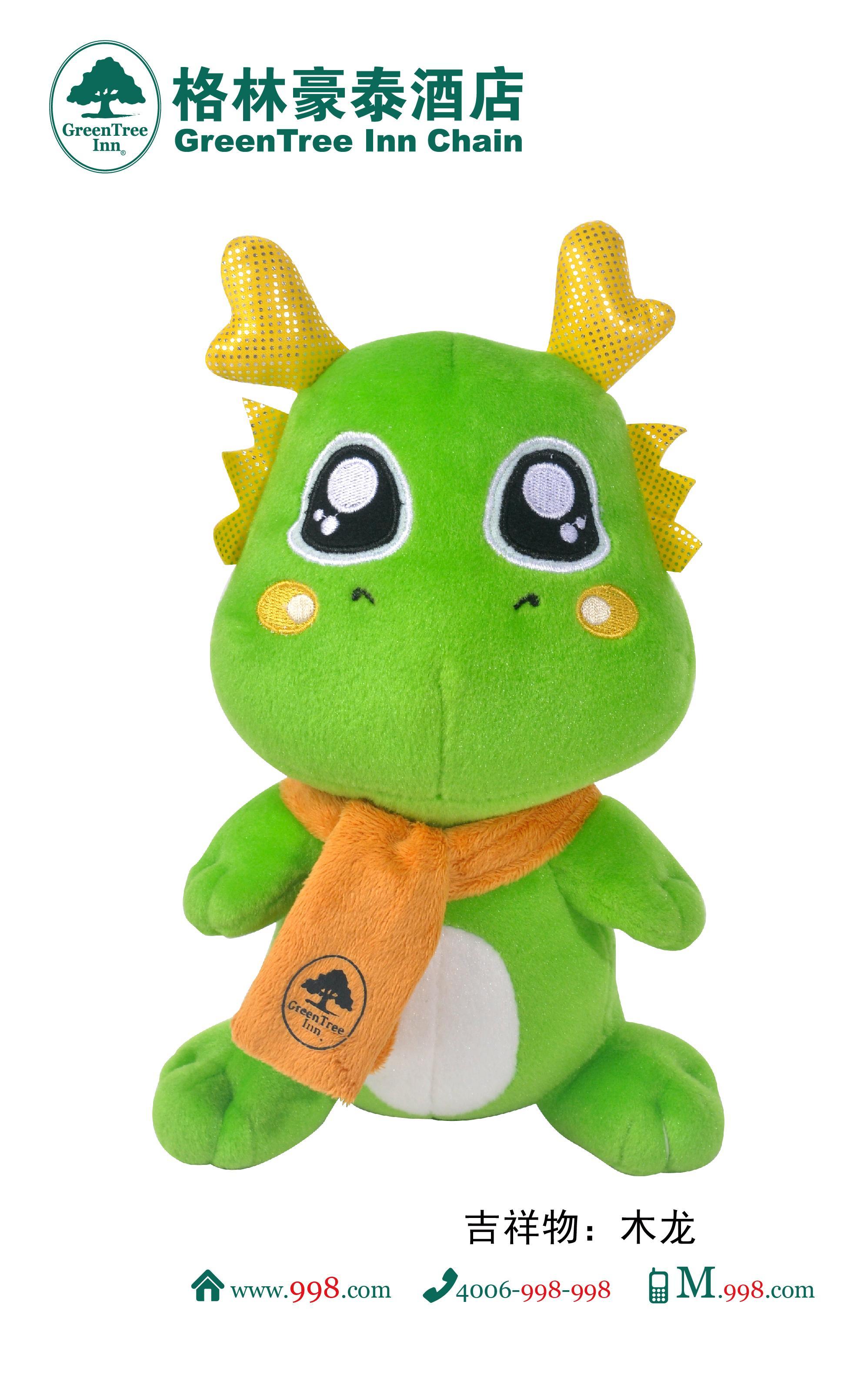 2012年恰逢龍年,格林豪泰吉祥物“木龍”的設(shè)計(jì),以擬人的手法,在傳統(tǒng)“龍”的形象中融入現(xiàn)代“萌”的元素,變幻成一個(gè)活潑可愛(ài)的公仔。“木龍”外形設(shè)計(jì)憨態(tài)可掬,像一個(gè)迎賓的小精靈,迎接格林豪泰八方來(lái)客。與典雅穩(wěn)重的“格林綠”有所不同,“木龍”選取“蘋果綠”作為主色調(diào),同時(shí)搭配少量黃色元素,跳脫而鮮明?!疤O果綠”與格林豪泰整體風(fēng)格相融洽,寓意酒店及客人都生機(jī)勃勃、充滿活力。秉承格林豪泰高品質(zhì)、高性價(jià)比中檔商務(wù)型酒店品牌定位,首批毛絨“木龍”采用克重高、密度大、易清洗的賽樂(lè)絨面料,填充料為全新一級(jí)“匯維仕”三維真空 PP 棉,不含甲醛,不易變形。格林豪泰注重通過(guò)細(xì)節(jié)體現(xiàn)品牌魅力,吉祥物“木龍”的設(shè)計(jì)也不例外。格林豪泰為吉祥物“木龍”設(shè)計(jì)了圍巾、絲帶、三角巾等多款配飾,增添了“木龍”的時(shí)尚范兒。