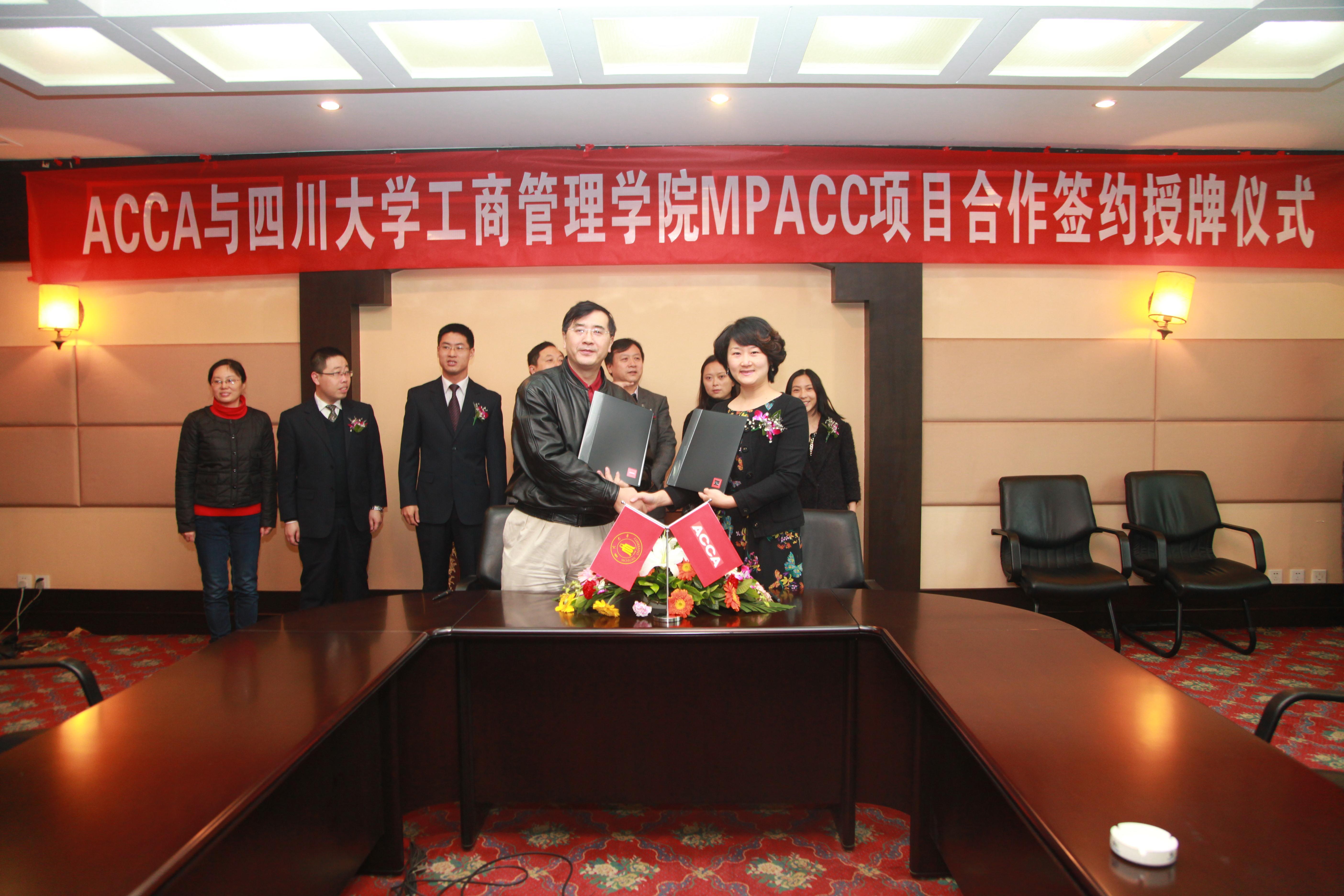 上海2012年11月12日電 /美通社/ -- ACCA(特許公認(rèn)會(huì)計(jì)師公會(huì))與四川大學(xué)工商管理學(xué)院近日簽署協(xié)議深化合作,授予四川大學(xué)工商管理學(xué)院為ACCA與MPAcc合作培養(yǎng)中心,共同培養(yǎng)國(guó)際化高級(jí)財(cái)會(huì)人才。