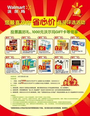顧客在沃爾瑪購(gòu)物廣場(chǎng)及好又多門(mén)店可通過(guò)“省心價(jià)”商品標(biāo)牌找到他們喜歡的“省心價(jià)”商品。通過(guò)“上千種省心價(jià)商品如您所需”的活動(dòng),沃爾瑪希望能夠?yàn)轭櫩吞峁└L(zhǎng)期的有價(jià)格優(yōu)勢(shì)的優(yōu)質(zhì)商品。