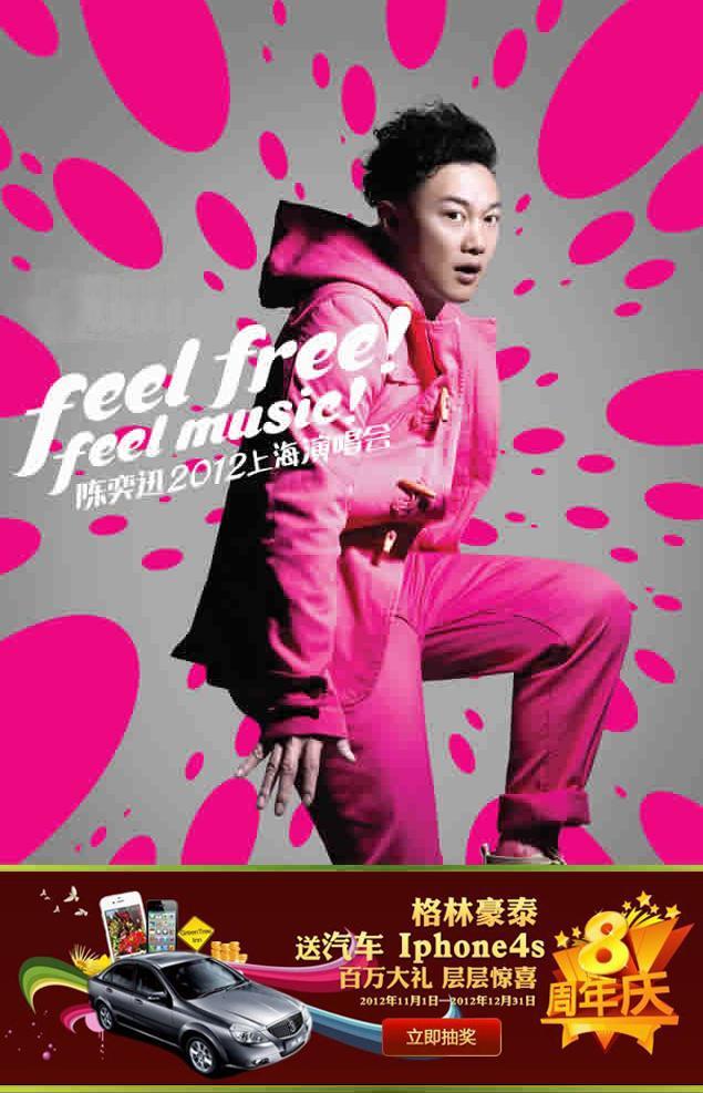 上海2012年12月5日電 /美通社/ -- “feel free ! feel music !陳奕迅2012上海演唱會(huì)”將于12月8日晚19:30在上海梅賽德斯奔馳文化中心拉開(kāi)序幕。演唱會(huì)萬(wàn)張門(mén)票已提前3周搶購(gòu)一空,場(chǎng)面火爆,一票難求。為回饋廣大客戶長(zhǎng)期以來(lái)的關(guān)注與支持,格林豪泰酒店管理集團(tuán)(以下簡(jiǎn)稱:格林豪泰)特別推出“微博贈(zèng)票”活動(dòng),緩解 “一票難求”,并邀您共睹“歌神”風(fēng)采。