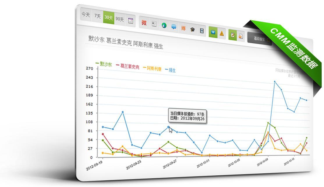 北京2012年12月10日電 /美通社/ -- 全球領(lǐng)先的企業(yè)傳播服務(wù)機(jī)構(gòu) -- 美通社今日宣布,旗下“中國網(wǎng)絡(luò)與社交媒體監(jiān)測”(China Media Monitoring,以下簡稱 CMM)完成重要升級,通過重設(shè)關(guān)鍵詞體系、增加標(biāo)簽式數(shù)據(jù)篩選等,升級后的 CMM 將使用戶獲得更加精準(zhǔn)、快速、細(xì)分和直觀的媒體監(jiān)測結(jié)果。企業(yè)用戶可登錄 http://cmm.prnasia.com 了解詳情及申請?jiān)囉谩?/p>