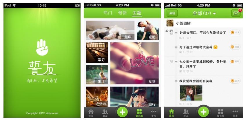 《誓友》最初的創(chuàng)意源于人們在現(xiàn)實生活中經(jīng)常發(fā)生的“發(fā)誓“,這一表達個人情感和建立目標的有趣方式。有很多人喜歡發(fā)誓,但誓言往往落空,這是因為缺乏最終成功的秘籍。移動互聯(lián)網(wǎng)迅速發(fā)展的今天,人人都有手機,《誓友》的誕生希望能夠幫助用戶實現(xiàn)他們的誓言,所謂生活有目標就有希望。從意義上來講,這也是之前移動應用領域中所沒有的。