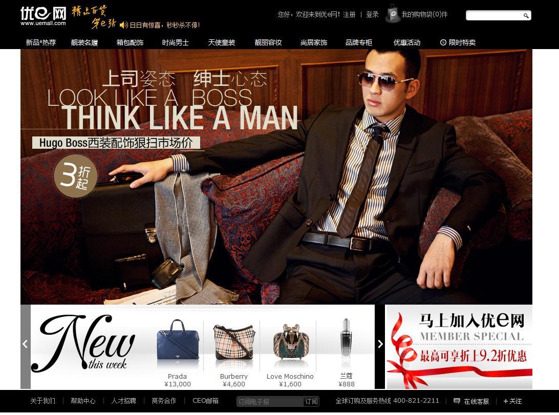 優(yōu)e網(wǎng)是上海優(yōu)怡電子商務(wù)有限公司創(chuàng)立的國內(nèi)首家網(wǎng)上精品百貨商城,通過電子商務(wù)形式推廣優(yōu)質(zhì)精品的生活理念和方式,并以此推動(dòng)中國的網(wǎng)絡(luò)高檔消費(fèi)。公司以高檔生活用品為主營項(xiàng)目,高收入高消費(fèi)人群為主要目標(biāo),以提倡精致生活品質(zhì)為較高宗旨。上海優(yōu)怡電子商務(wù)有限公司隸屬于新海嘉集團(tuán),集團(tuán)公司的業(yè)務(wù)跨電子商務(wù)、五星級(jí)酒店、高檔餐飲、房地產(chǎn)、礦業(yè)等多個(gè)領(lǐng)域。