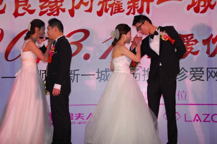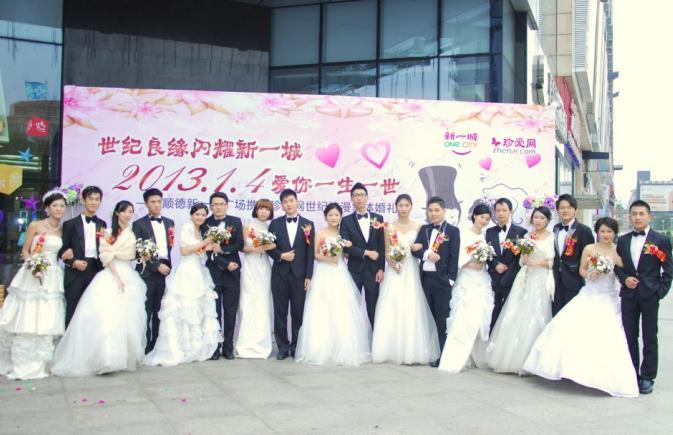 據(jù)主辦方新一城介紹,本次與珍愛網(wǎng)攜手合作的“2013.1.4愛你一生一世”集體婚禮對(duì)于9對(duì)有結(jié)婚打算或即將步入婚姻殿堂的新人來說意義非凡。其中有一對(duì)新人還是一大早去民政局排隊(duì)領(lǐng)證,中午才趕來的,在2013年1月4日“愛你一生一世”這個(gè)歌特別的日子成為合法夫妻并且參加集體婚禮,對(duì)于他們來說確實(shí)賦予了不一樣的意義。
