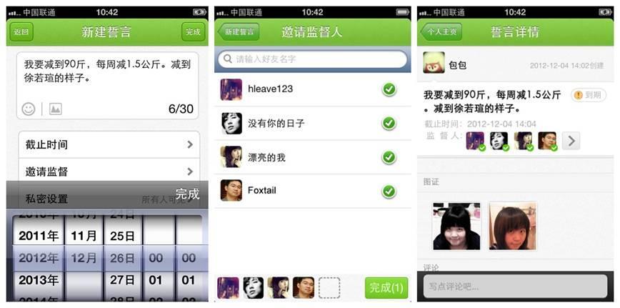 網(wǎng)友@ 或許就要單身說:誓友太強大了,大家在誓友對目標上相互監(jiān)督,比如相約一起早起、復習或是鍛煉等。每個參與者天天去誓友上評論、發(fā)圖證更新戰(zhàn)拖情況。