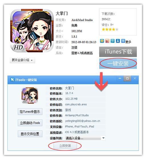 深圳2013年2月28日電 /美通社/ -- 日前, iTools “一鍵安裝”功能擴(kuò)容升級,獨家支持 App Store 正版應(yīng)用的一鍵安裝,用戶只需點擊iTools “一鍵安裝”按鈕,軟件即可自動安裝到蘋果設(shè)備。作為一款簡單好用的蘋果PC端管理工具,由創(chuàng)想天空研發(fā)的iTools 一直致力于給果粉提供較便捷的蘋果管理服務(wù)。