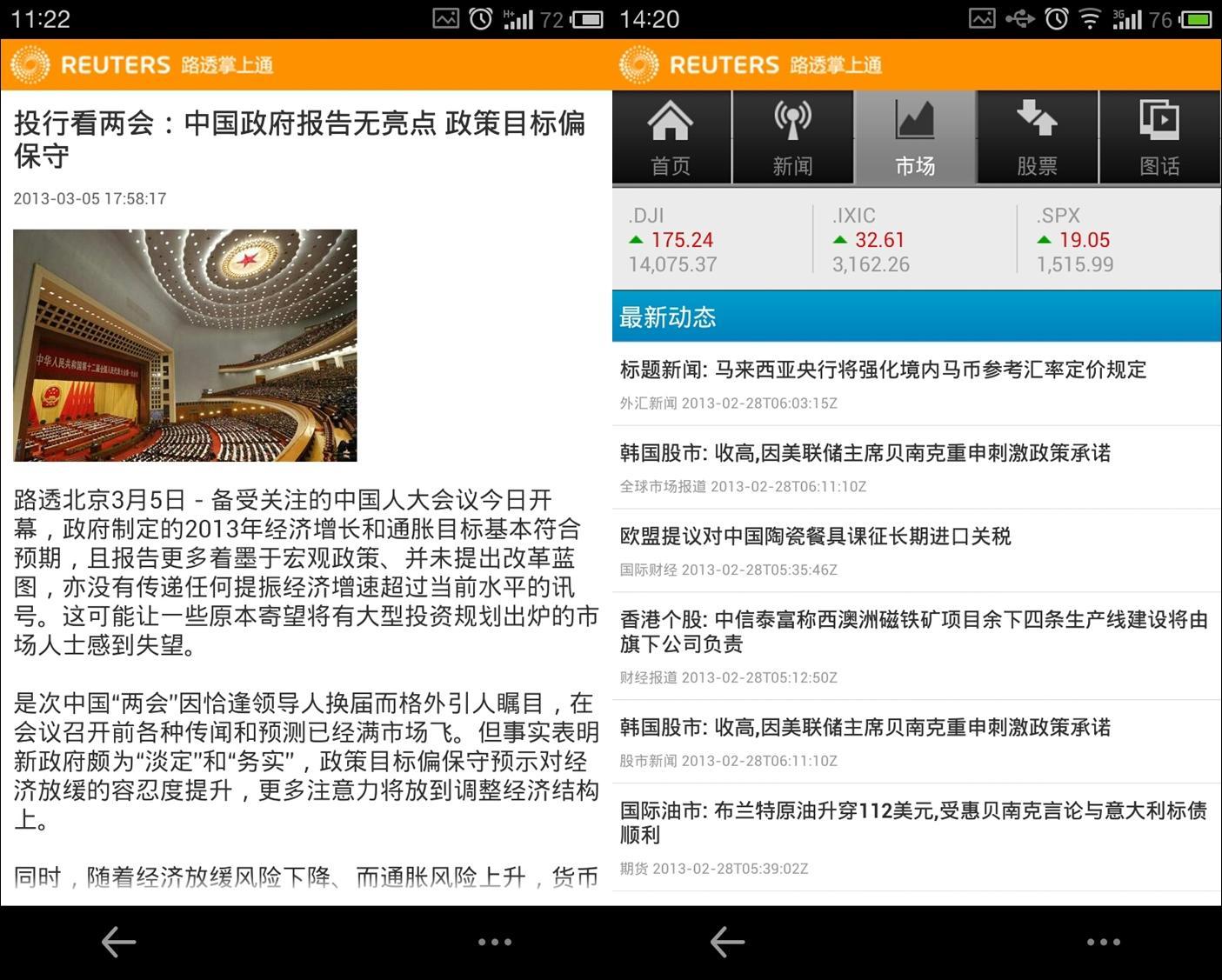 北京2013年3月11日電 /美通社/ -- 世界領(lǐng)先的智能信息及媒體公司湯森路透今日宣布,旗下路透中文網(wǎng)全新安卓中文版應(yīng)用程序正式上線。至此路透中文網(wǎng)“路透掌上通”應(yīng)用程序系列全面覆蓋主流移動(dòng)操作平臺(tái),進(jìn)一步滿足商務(wù)人士對(duì)全球財(cái)經(jīng)及市場動(dòng)態(tài)資訊的實(shí)時(shí)需求。