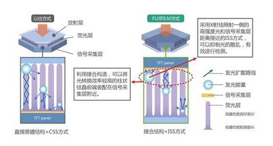 *2 Flat Panel Detector,指的是X射線圖像平板探測器,具有能夠?qū)⑼高^被拍物體照射的X射線能量轉(zhuǎn)換為以X射線穿透圖像重新成像的電信號(hào)的功能,出于診斷需要,擁有能夠充分覆蓋人體面積的平面。X射線一旦轉(zhuǎn)換為光信號(hào)后,就有兩種轉(zhuǎn)換類型,分別是:轉(zhuǎn)換為電信號(hào)的間接轉(zhuǎn)換型和將X射線直接轉(zhuǎn)換為電信號(hào)的直接轉(zhuǎn)換型。