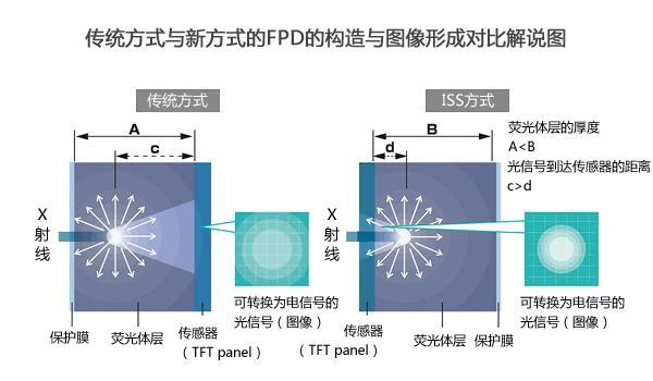 搭載了在X光的照射面采集信號的“ISS方式”的間接轉換型FPD。光信號到達信號采集層的距離縮短,有限防止了擴散和衰弱,大幅提升了X光轉換效率。另外,通過精密涂層技術和粒子形成技術等,加厚了熒光體層,即使是較少的輻射量也可以獲得清晰的X光圖像。
