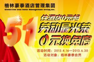 2013年4月16日至6月30日,格林豪泰推出的“勞動最光榮,0元換免房”活動?;顒悠陂g,格林豪泰會員只要通過官網(wǎng) 998.com、智能手機(jī)m.998.com、APP預(yù)訂并入住酒店、官網(wǎng)每日簽到等方式獲得足額的格林幣和推廣金,便可通過格林官網(wǎng)“積分商城”免費兌換格林豪泰千家酒店任意一間/夜豪華客房。另外,根據(jù)客人的不同需求,也可兌換家居生活、數(shù)碼家電等精美好禮。(溫馨提示:格林幣越多可以兌換的禮品越豐厚。)