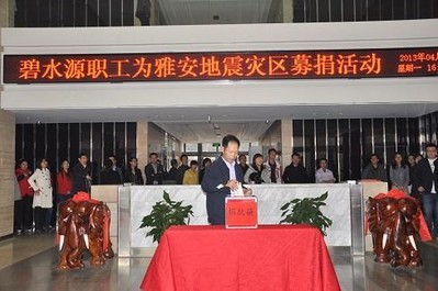 四川雅安蘆山地震發(fā)生后,中國扶貧基金會立刻緊急啟動應急救災程序。地震發(fā)生兩小時后,聯(lián)合騰訊公益慈善基金會發(fā)布雅安地震緊急救援樂捐項目,聯(lián)合新浪網(wǎng)發(fā)布有你救有力量—雅安地震緊急救援倡議書,下午三點決定向地震災區(qū)捐贈100萬元,下午五點追加到200萬元用于采購緊急救援物資,并派出緊急救援隊前往蘆山評估災情、采購發(fā)放救災物資,當晚24點,緊急救援隊到達災區(qū),立刻向當?shù)睾献骰锇榱私鉃膮^(qū)救援情況、受災情況及災區(qū)需求。中國扶貧基金會四川蘆山救援行動啟動后,許多愛心企業(yè)和公眾積極響應,踴躍捐款捐物,大力支持一線救災工作。恒大集團第一時間與中國扶貧基金會溝通,了解了災情和災民需求后率先捐贈2000萬元;英特爾捐款1000萬元并將與中國扶貧基金會創(chuàng)新模式,探索企業(yè)捐款在救災和重建過程中更有效、更有價值的使用;三六一度(中國)捐贈800萬元、安利捐贈500萬元、如新(中國)捐贈1000萬元、天喔食品集團捐贈500萬元物資;愛心公眾通過騰訊樂捐、新浪微公益、支付寶公益、返利網(wǎng)、短信捐贈平臺、淘寶官方店、銀行賬戶等捐贈平臺捐款225.6萬元。截至4月23日早上九點,社會各界捐款捐物超過1億元。新聞發(fā)布會上,中國扶貧基金會段應碧會長,副會長江紹高、王行最接受了愛心企業(yè)和個人的捐贈。