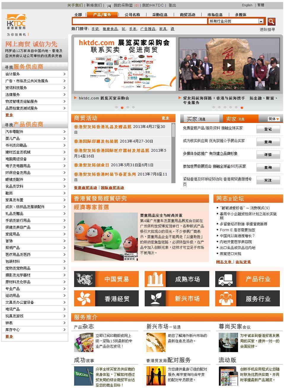 作為結(jié)合書、網(wǎng)、展的全方位外貿(mào)推廣平臺,是香港貿(mào)發(fā)局獨有的優(yōu)勢,有利于幫助中小企業(yè)拓展環(huán)球業(yè)務(wù)、協(xié)助內(nèi)地企業(yè)走出去。香港貿(mào)發(fā)局網(wǎng)上貿(mào)易平臺 -- “貿(mào)發(fā)網(wǎng)” www.hktdc.com 現(xiàn)時匯聚12萬優(yōu)質(zhì)供應(yīng)商用戶群,當(dāng)中包括貿(mào)發(fā)局展會參展商及產(chǎn)品雜志廣告商;登記買家超過130萬,包括每年到港參加貿(mào)發(fā)局展覽會的優(yōu)質(zhì)買家,全年不斷經(jīng)“貿(mào)發(fā)網(wǎng)”進行采購。除此之外,貿(mào)發(fā)局每年舉辦30多項頂級貿(mào)易展覽會,當(dāng)中3個是全球之冠,9個為亞洲較大。而香港貿(mào)發(fā)局每年亦發(fā)行15類產(chǎn)品雜志及數(shù)十本專題特刊,直達全球500萬名買家。